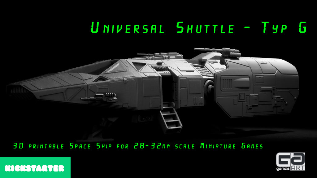A modular shuttle fleet designed as playable terrain for sci-fi tabletop and roleplaying games, with accessible interiors and multiple ship variants for different mission roles.